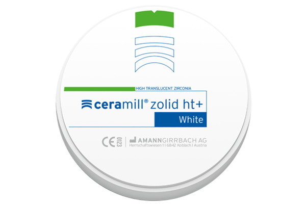 Zolid HT + : Là oxide zirconium có độ trong mờ cao, kết hợp các đặc tính cơ học cao với tính thẩm mỹ vượt trội .Với hơn 1.100 MPa, sức bền của nó nằm trong chỉ định của phôi Zolid trước đây, tuy nhiên, các đặc tính quang học với ánh sáng được tối ưu hóa đáng kể. Ngay cả các cấu trúc lớn, chẳng hạn như các cấu trúc được nâng đỡ trên implant có cả các phần nướu, thể hiện sự sống động của cấu trúc răng tự nhiên nhờ vào đặc tính thẩm thấu cao với ánh sáng. Với độ ổn định bờ phục hình cực cao, Zolid HT + cho phép thiết kế bờ phục hình tinh tế qua việc xử lý bằng CAD/ CAM.